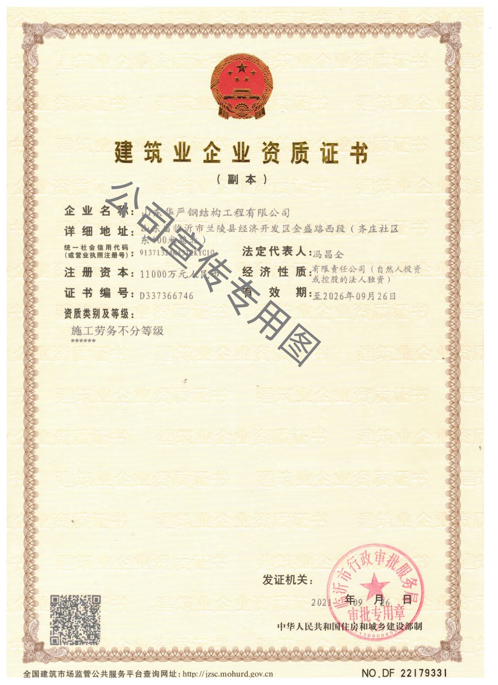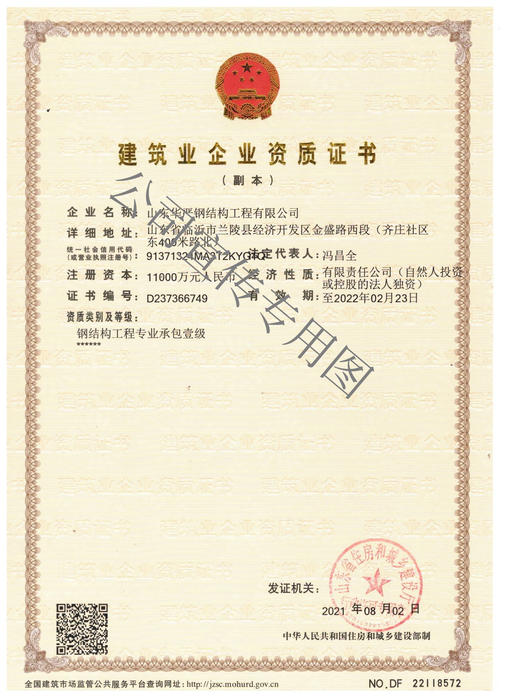 山東華嚴鋼結構工程有限公司,注冊資金1.1億元,公司位于山東省臨沂市蘭陵縣經濟開發(fā)區(qū),占地面積5萬多平方米,是一家以鋼結構建筑為主業(yè),設計、制作、安裝于一體的大型聯(lián)合企業(yè)。本公司堅持“產品專業(yè)化、生產規(guī)模化、突出專業(yè),做強鋼構產業(yè)”的發(fā)展戰(zhàn)略,成功組建了輕鋼、彩板、網架三大專業(yè)公司,形成了分工明確、各具優(yōu)勢、做精做強的鋼結構發(fā)展宏大產業(yè)群。公司具備年產各類鋼構件5萬噸、新型維護系統(tǒng)50萬平方米的生產能力。